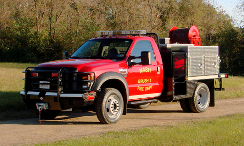 Brush 1 is a wildland type 6 engine on a 2009 Ford F-450 chassis with a 300 gallon water tank and a 200 GPM pump. It is designed to go off-road and fight brush or grass fires.