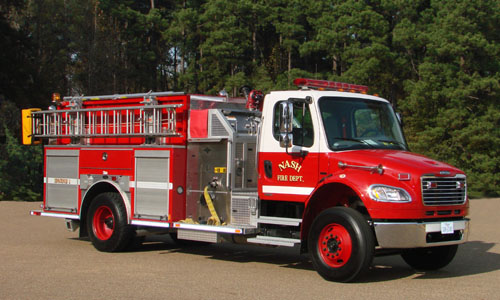 Engine 1 is a 2006 E-One Tradition pumper on a Freightliner M2 chassis. It is equipped with all the tools necessary for most types of fires. It carries 1,000 gallons of water and is capable of pumping at up to 1,250 gallons per minute.